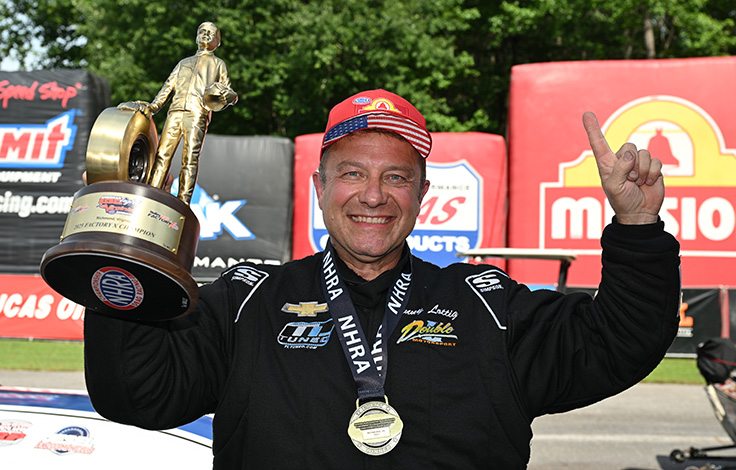 There wasn’t a consistently rosy glow over the camp, however. Chicago was a blight of a race for Lottig, who relayed that he went “from hero to zero really quick” as “the wheels nearly came off the bus.” Mechanical issues nearly caused catastrophic failures in two rounds of qualifying, and he was forced to park the car and miss round one. But Route 66 Raceway was soon in the rearview, and Lottig found vindication and victory in Richmond as he defeated No. 1 qualifier and teammate Alexandra in the final. Lottig crossed the finish line with a triumphant 7.037 to his opponent’s 7.038.