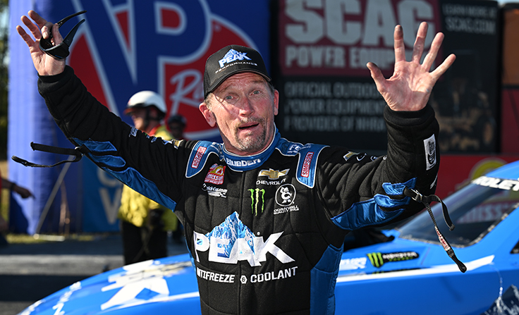 With second-place Matt Hagan out in round one, Prock's lead only continued to grow as Spencer Hyde smoked the tires alongside him in the next race. His current lead is 91 points, and he's assured of heading to Las Vegas still in the top spot.