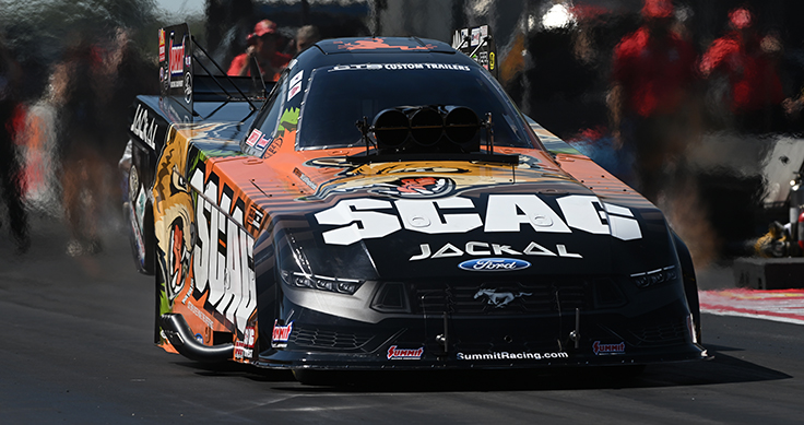 In a rematch of their final round race at the recent Midwest Nationals, points leader Doug Kalitta advanced to the semifinals with a 3.75 over Ida Zetterström, Kalitta’s 11th round win of the Countdown so far, as he chases a second world championship. No matter happens the rest of the day, Kalitta will head into the season’s final two races with the points lead.