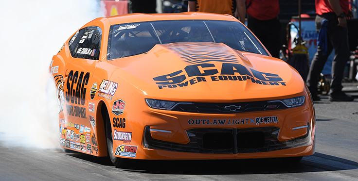 Jeg Coughlin Jr., the Pro Stock class leader in reaction-time average, beat Cory Reed on a holeshot, 6.60 to 6.56, as he tries to get another win for Scag Power Equipment in his final three races with the "cat's-eye gold" Camaro.